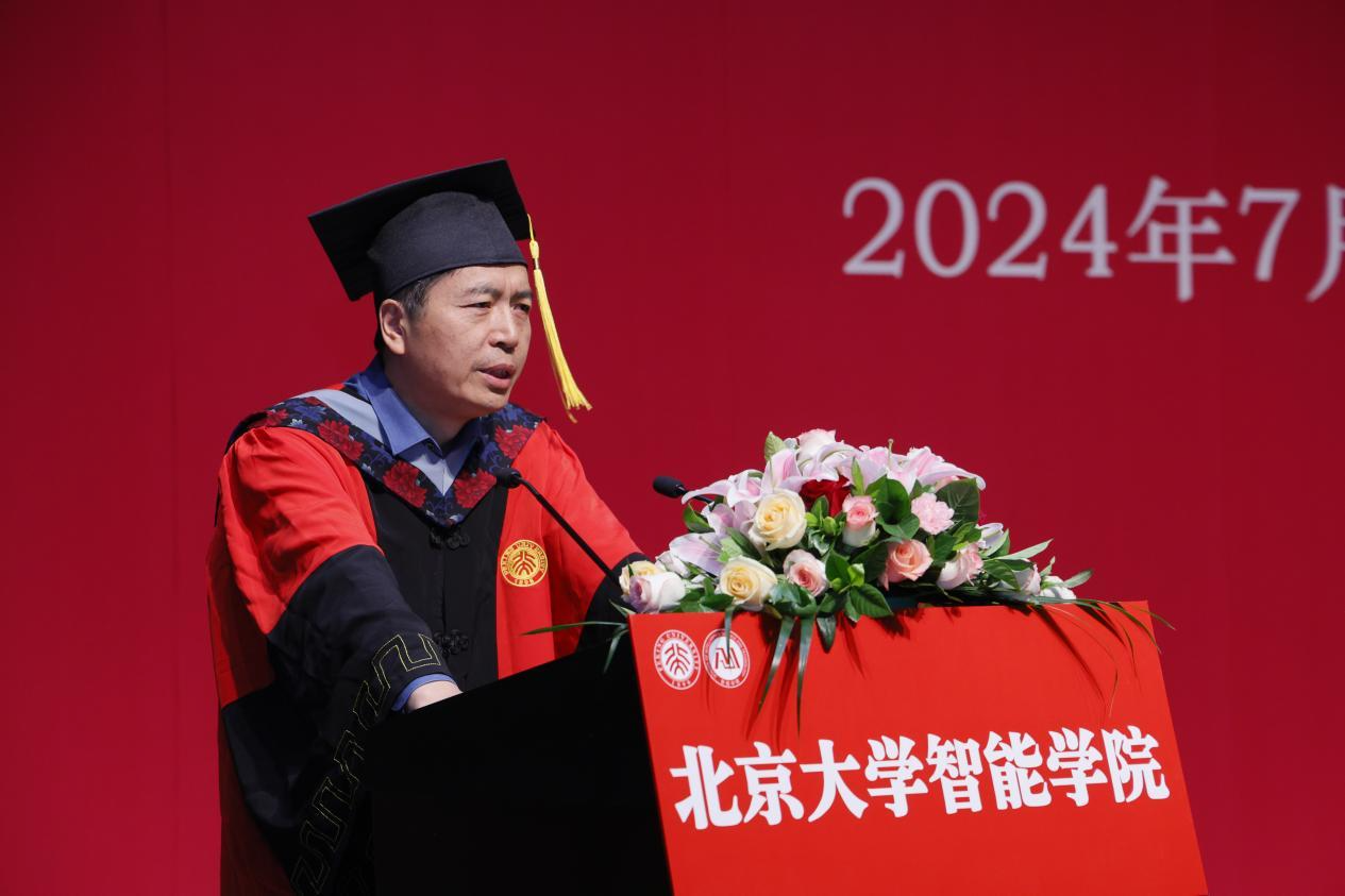 朱松纯以“为机器立心,为天地立心”为题为毕业生送上寄语,通过阐释“通用人工智能”的内涵,提出我们亟需走出一条符合中国国情、原创引领的人工智能技术发展路径。他鼓励同学们把握时代机遇,参与到国家重大科研攻关中,服务国家战略需求,把个人发展与国家命运、民族复兴、时代召唤紧密结合,走出更为精彩的人生道路。