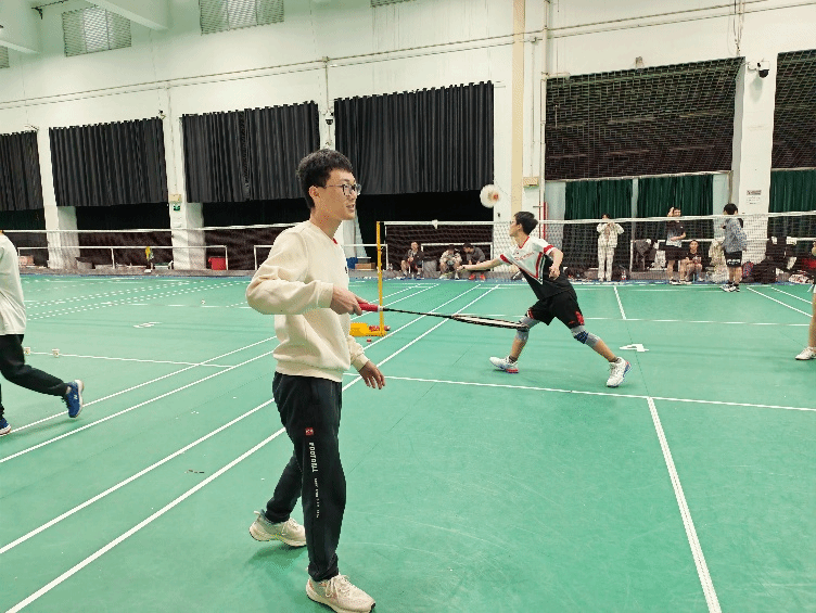 小组赛阶段,各队伍火力全开,亮点纷呈。呼风唤雨队虽面临人数不足的挑战,但队员们凭借不俗的整体实力,多次打出精彩绝伦的高质量回合,始终坚守赛场完成全部比赛,用坚持与毅力成为小组赛中极具存在感的队伍;由老师们组成的羽濛濛队则展现出稳健从容的竞技风范,沉着的节奏把控、规范的技术动作,不仅展现了扎实的功底,更赢得了在场同学们的一致尊敬,为赛场注入了沉稳安心的独特氛围;智在四方队的本科生们则化身赛场上的 “活力旋风”,积极跑动、专注投入,每一次跳跃扣杀都充满青春朝气,用蓬勃的生命力为比赛增添了无限激情。