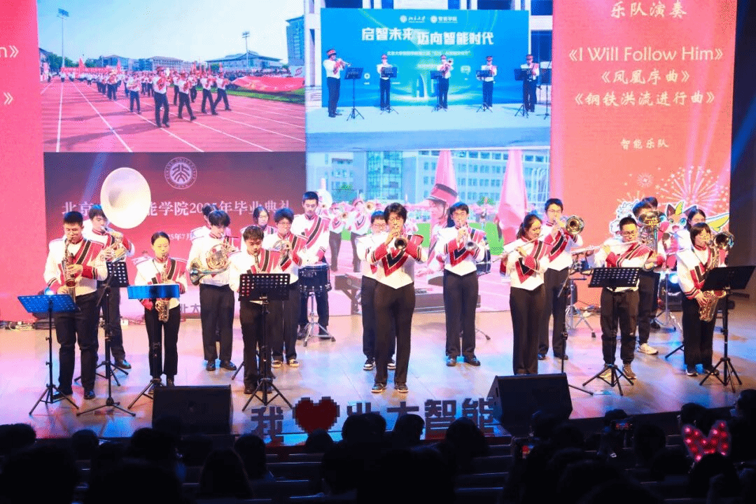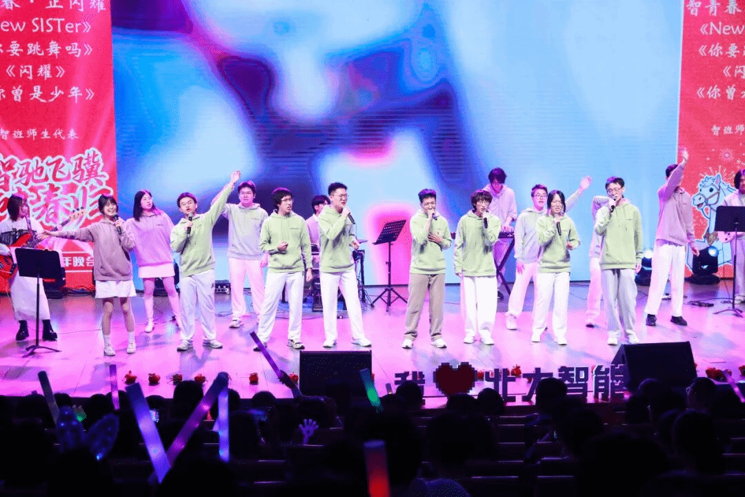 本次晚会主题为“智驰飞骥啸春归”,共分“青春赴新声”“初心映使命”“星途向远方”三个篇章。其中,智能乐队接连奏响《I will follow him》《凤凰序曲》与《钢铁洪流》三首乐章,不仅激荡出科技与艺术融合的绚烂火花,更奏出北大智能人一往无前、锐不可当的精神风貌与时代担当。通班学生将《难忘今宵》演唱与“高雅人士”、《Macarena》舞蹈相结合,真情演绎智能科研人在实验室、图书馆为梦想奋斗的日日夜夜。智班师生携手轨迹乐队,带来了歌曲串烧《致青春·正闪耀》,连唱《New SISTer》《你要跳舞吗》《闪耀》《你曾是少年》四首劲歌,展现了智班学子朝气蓬勃的风采。