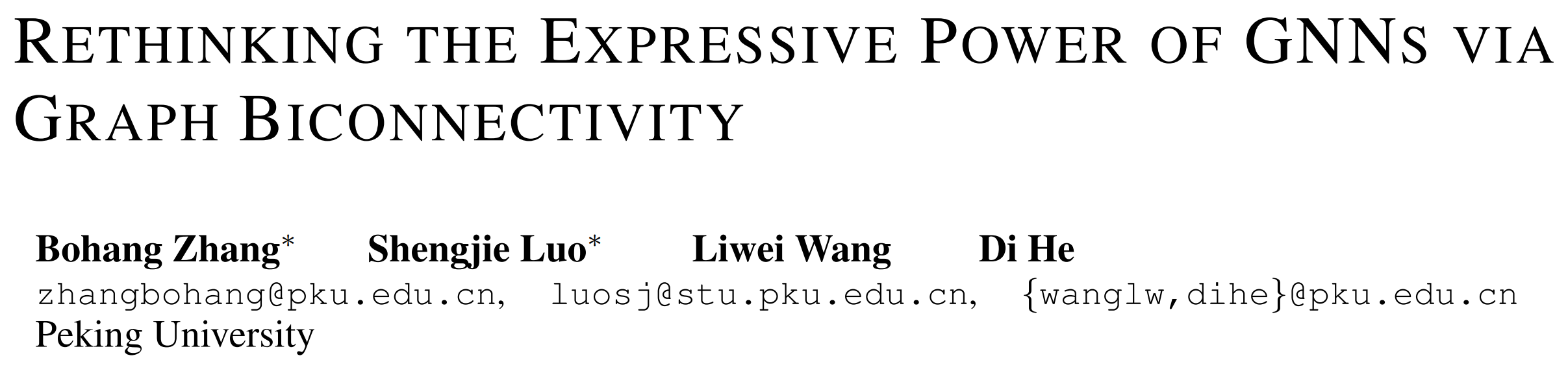 贺笛、王立威教授团队的科研成果“Rethinking the Expressive Power of GNNs via Graph Biconnectivity”成为仅有的四篇入选论文之一。
