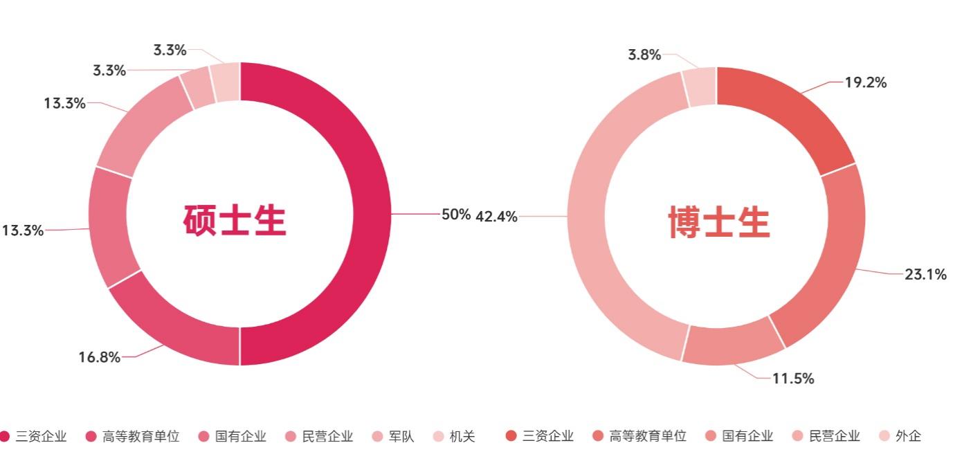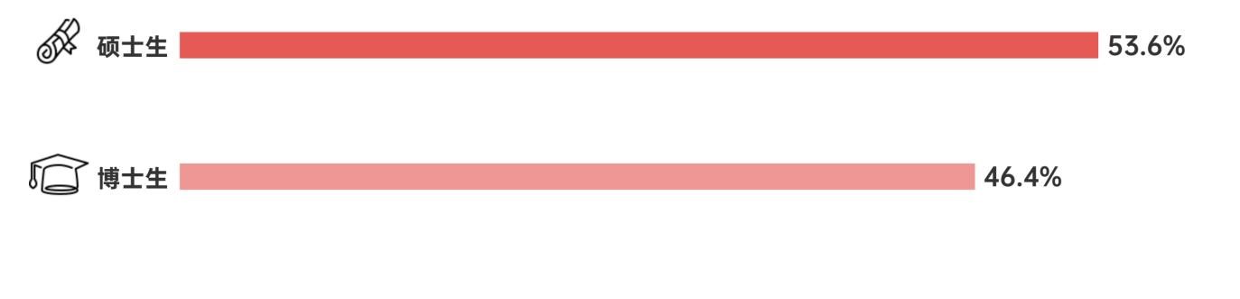 2022届毕业生中,硕士研究生占比53.6%,博士研究生占比46.4%(见图1)。