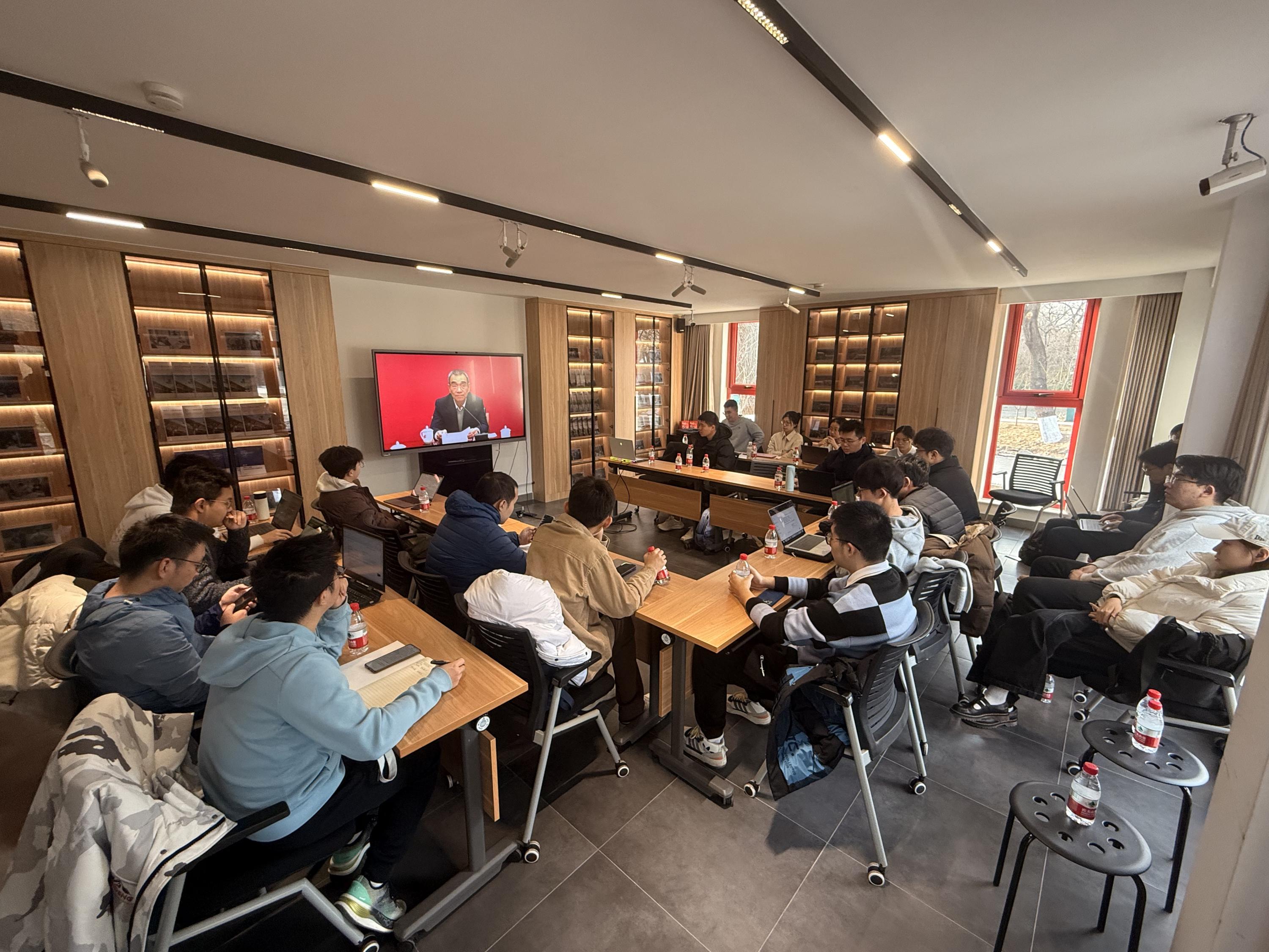 党委共有九个支部的党员到场参会。与会党员认真听取北京大学新结构经济学研究院院长、国家发展研究院名誉院长林毅夫的直播授课,并开展了研讨交流。