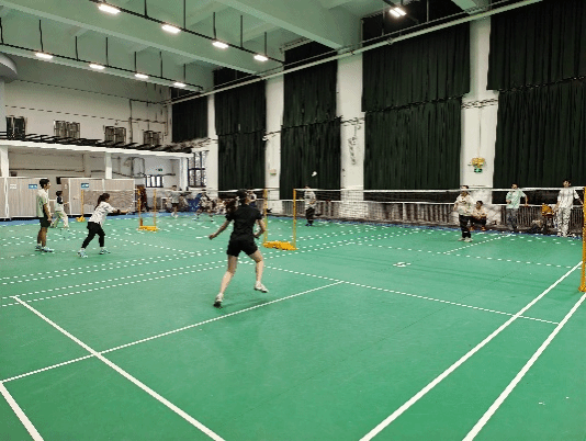 本次交流赛以团体赛形式展开,涵盖男单、女单、男双、混双四大竞技项目,更创新加入颠球、羽毛球保龄球、羽毛球投壶三选一趣味赛环节,既考验竞技实力,又充满欢乐氛围。参赛队伍各具特色,队名个性十足 —— 羽濛濛队、摸鱼也要赢队、Crazy diamond 队、智在四方队、娱乐至上队、大运队、呼风唤雨队,每一支队伍都带着满满的自信与期待登场。
