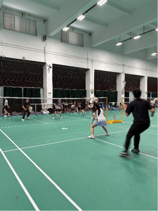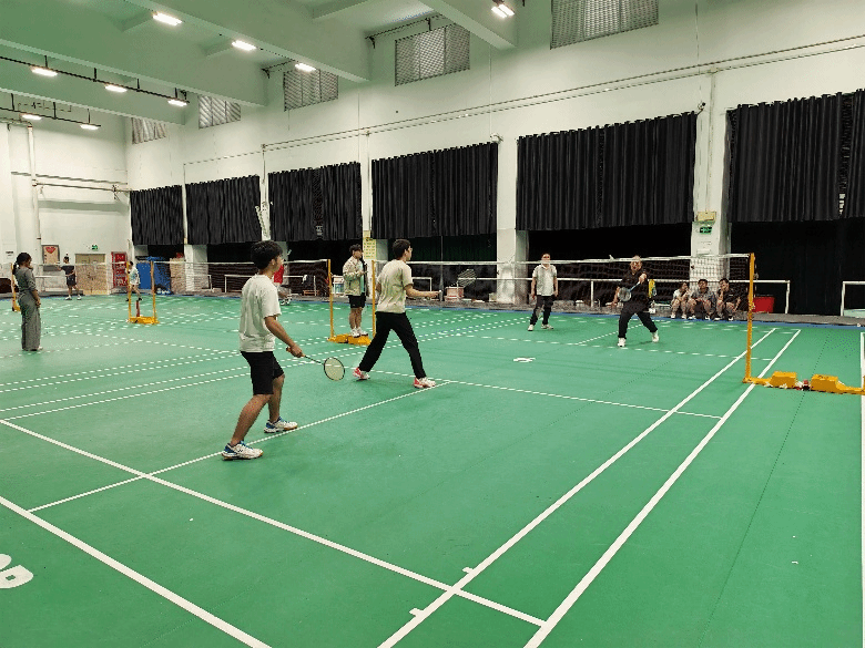 小组赛阶段,各队伍火力全开,亮点纷呈。呼风唤雨队虽面临人数不足的挑战,但队员们凭借不俗的整体实力,多次打出精彩绝伦的高质量回合,始终坚守赛场完成全部比赛,用坚持与毅力成为小组赛中极具存在感的队伍;由老师们组成的羽濛濛队则展现出稳健从容的竞技风范,沉着的节奏把控、规范的技术动作,不仅展现了扎实的功底,更赢得了在场同学们的一致尊敬,为赛场注入了沉稳安心的独特氛围;智在四方队的本科生们则化身赛场上的 “活力旋风”,积极跑动、专注投入,每一次跳跃扣杀都充满青春朝气,用蓬勃的生命力为比赛增添了无限激情。