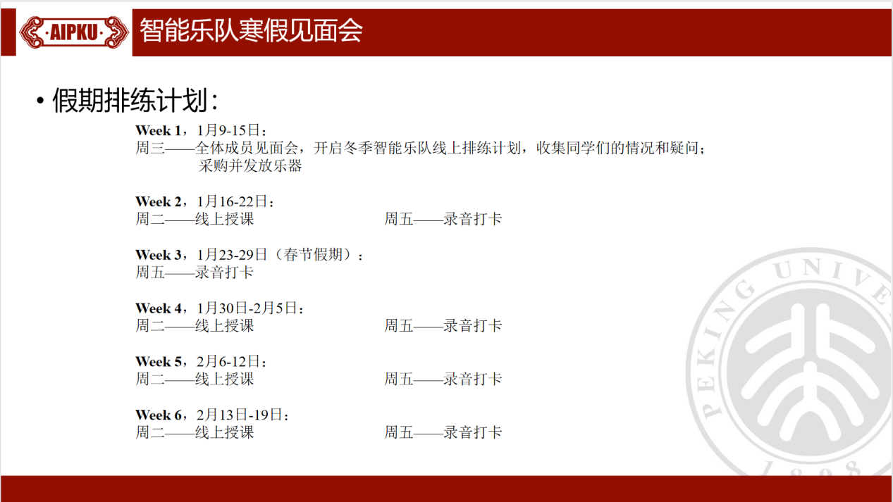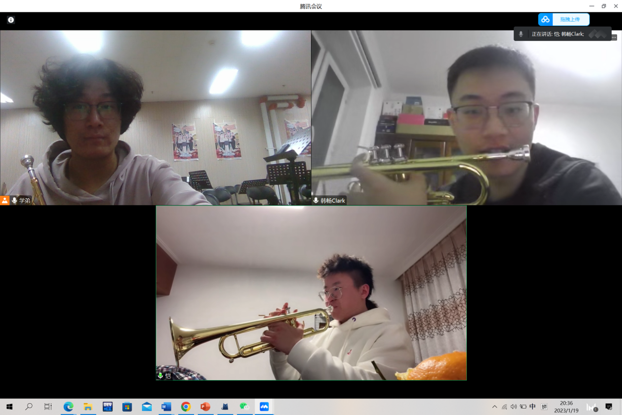 1月11日,乐队的顾问老师、乐器教师、各声部成员同学和香港六合彩现场直播 团研骨干组成的后勤保障组同学,共同召开了2023年第一次线上见面会,就乐队情况、训练计划、后勤保障等进行了沟通与安排。